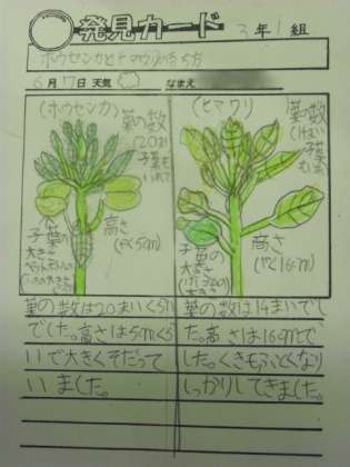 観察カードにその様子を記録しました。