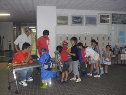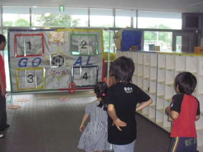 おやじの会主催の「スポーツ・ゲーム大会」です。雨のため、昇降口や視聴覚室、体育館を使って、ドッジビーのストラックアウトやゴキブリたたき、缶積み、スポーツチャンバラなどなど、楽しいゲームやスポーツで汗をながします。105名の子どもたちが参加しました。毎年楽しみにしている子どもたちが大勢です。最後は、おやつのお菓子も貰って大喜びです。おやじの会の皆様ありがとうございました。ひがしの子どもたちは、いつも地域や保護者の皆様に見守られて幸せです。
