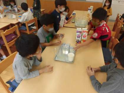 意外(いがい)にも多くの水が入ることに調(しら)べた児童(じどう)もびっくりしていました。(S・Y)(S・K)