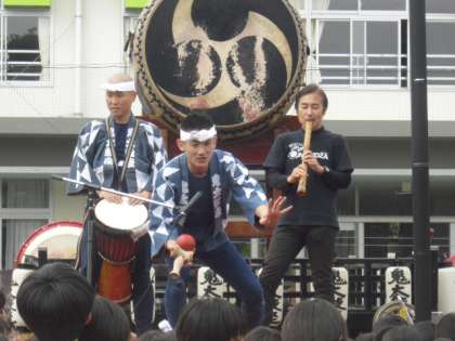 明日の授業参観日にあわせて、5月6日(金)に行った、「ミュージック&リズムス」(鬼太鼓座などの演奏)のコンサート記録DVDの放映を行います。