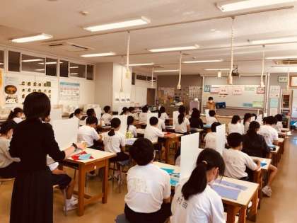 東深沢中学校の家庭科の先生が、東深沢小学校の家庭科の授業を参観しました。