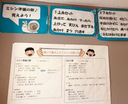 中学の先生から、中学の生徒が、小学校で習ったミシンの歌を歌いながら製作している話を伺い、嬉しくなりました。