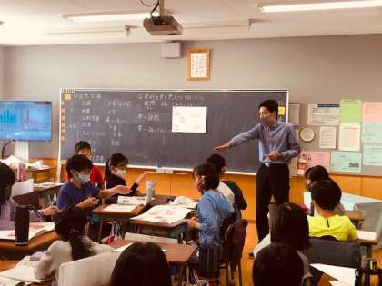 授業の前半、様々な自然災害の映像が拡大テレビに写し出されるたびに、子供たちは「すごい!」「怖い!」「これ知ってる!」など、活発に近くの友達と感想を伝え合いました。一年前の多摩川付近の浸水の様子は、身近におきたことなので子供たちの関心が特に高く、昨日に担任が撮影した映像との違いにとても驚いていました。