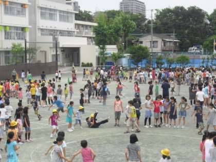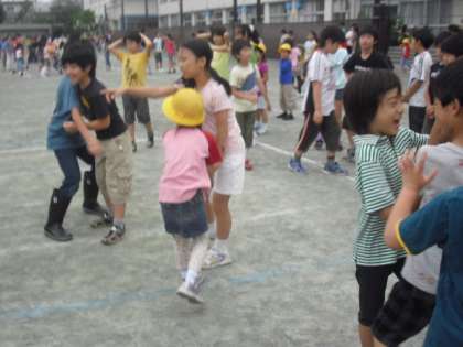 今朝は、体育委員会のお友達が計画した共遊びです。「じゅうじおに」や「せきしょやぶり」「じぞうおに」など鬼遊びを全校で楽しみました。1年生に優しく接している高学年を見ると心が清らかになります。子どもたちの美しい心を育てていきたいです。