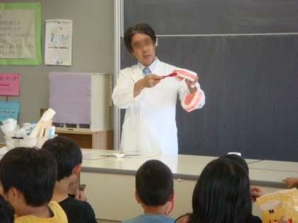 5校時、校医の永田先生をお招きして、4年生の歯磨き指導を行いました。