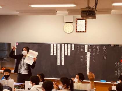 小倉百人一首の歴史や短歌について学び、実際にカルタとりをしました。子供たちは勝っても負けても楽しそうで、もっとたくさんの短歌を覚えたいと意欲を高めていました。(M.S)(T.S)