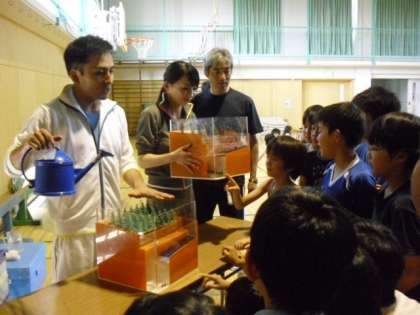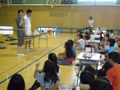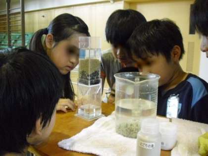 水源林やダムのはたらき、浄水場の水が飲み水になるまでの流れを学びました。映像で学習した後、実際に実験をしてろ過の仕組みが理解できました。(4年担任 百瀬)