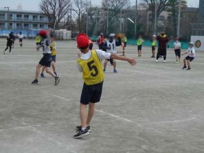 5,6時間目、卒業プロジェクトとして、6年生みんなの思い出を作るために球技大会を行いました。校庭でティーボールとアルティメット、体育館でドッジボールとキャッチバレーを行いました。友達を応援したり、一緒に喜んだりする姿が見られました。(T,S)(S,N)(K,K)(H,H)