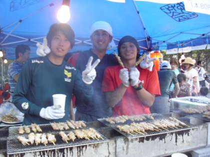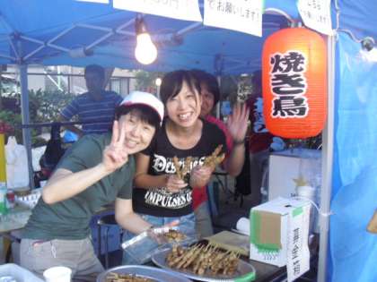 今日は東深沢納涼盆踊りです。おやじの会の「焼き鳥」屋さんに、先生方も参加です。