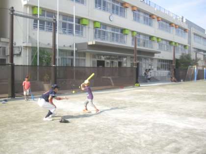 1年生から3年生対象の講座です。初めて野球を楽しむ子も経験のある子も楽しそうに野球に親しみます。教育実習をした後藤先生、日大の学生渡辺さんも一緒にお手伝いです。