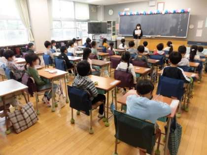 今年度初めて、全校朝会が放送にて行われました。校長先生から、「あいさつがあふれる学校にしていきましょう。」というお話がありました。1年生にとって初めての全校行事でした。最後まで背筋をピンと伸ばして聞いている姿が、各クラスで見られました。