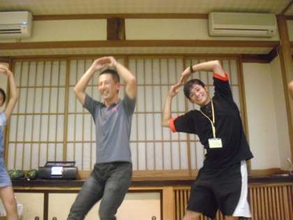 夜のレクでは先生方も子どもたちと一緒に盛り上げています。子どもたちが素直で元気に育っているのはこの先生方の力もあります。先生方も「ひがしのなかま」です。