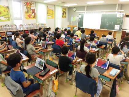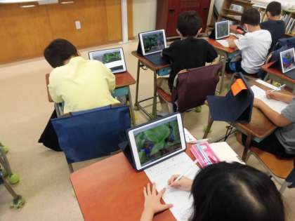 先週、1年生にタブレットが配布されました。今週に入り、タブレットを使用した学習に挑戦です。