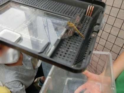 教室にはヤゴとチョウのさなぎがまだたくさんいます。元気に成虫(せいちゅう)に育つよう、一生懸命(けんめい)お世話を続(つづ)けていきます。