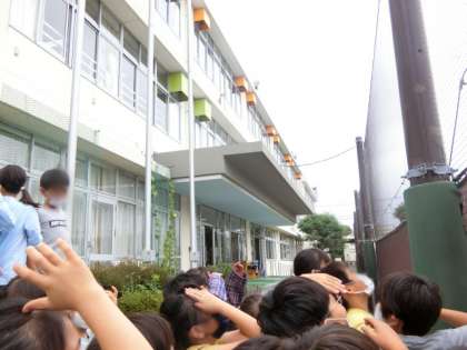今日、子供(こども)たちが学校に来るとトンボが2匹(ひき)、5時間目にはチョウが1匹(ぴき)羽化(うか)しました。