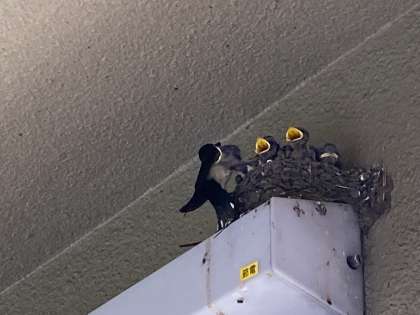 今度はツバメの巣にいる赤ちゃんにちょうどエサをあげに来た瞬間を見届けました!