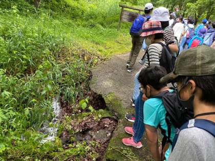 「うわぁ!湧水!冷たくて気持ちいい!」