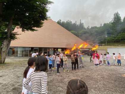夜のお楽しみ、キャンプファイヤーがスタートしました。