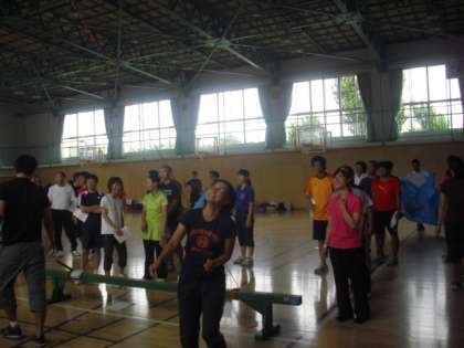夏休みは先生方の勉強会もたくさんあります。今日はその中の一つ、近隣小学校8校(第8ブロック)の体育実技研修をひがしで行いました。