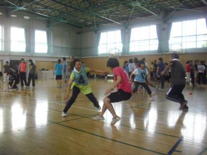 この実技研修は、私が本校の教員だった20年前にも行っていました。たくさんの先生方が、各学年に応じたボールを使った運動を体験しました。