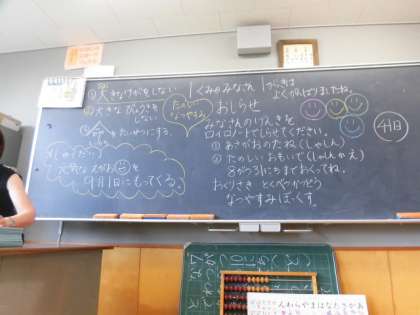 終業式が行われました。一年生にとって、入学式以来となる式です。一学期を通して、上手な礼をして挨拶ができるようになりました。校長先生から、「3つの約束」と「1つの宿題」の話がありました。二学期の始業式に、全て達成できた姿を見ることを楽しみにしています。3人の代表児童が一学期頑張ったことについてスピーチをしました。
