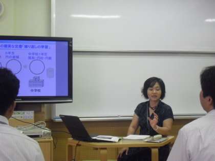 午前中は、等々力小学校と東深沢小学校の先生で「世田谷9年教育 教育指導要領」の研修を行いました。世田谷区の目指す「豊かな人間性」「豊かな知力」「健やかな身体」のためにどんな内容を学ばせるのか、教育委員会の指導主事塚本先生より学びました。