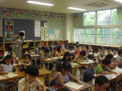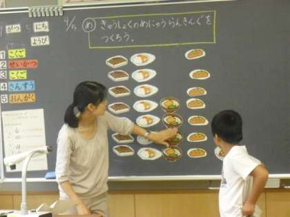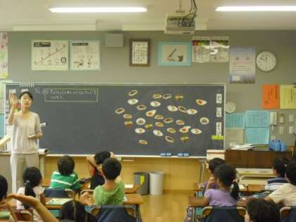 今日は、深川先生の4年次研修です。世田谷区教育委員会から若菜先生にいらしていただき、4時間目の算数と5時間目の音楽の学習を見ていただきました。授業を見ていただいた後は、今日の授業についてご指導をいただきました。