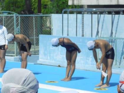 そして、お楽しみの自由練習の後、プール納めの式を行いました。自分たちの今夏の成長を振り返るとともに、来年の目標について決意表明をしていました。