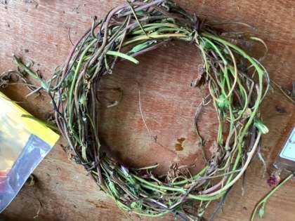 生活科で育てたあさがおのつるを使い、9月にリース作りをしました。