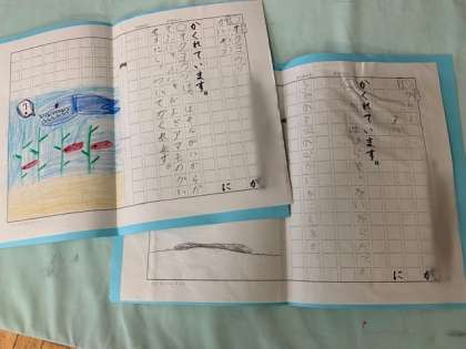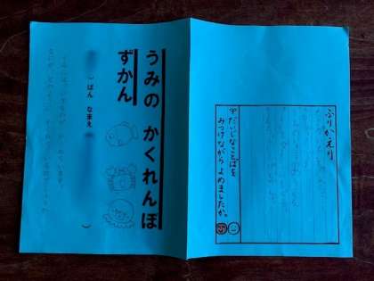 自分だけの「うみのかくれんぼずかん」を作り、学校公開では生き生きと発表することができました。友達の発表の内容に関心をもって聞き、新しい発見もあったようです。
