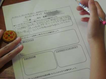 2時間目は3年生の社会科です。買い物調べからスーパーマーケットの工夫を探ります。今日話し合ったことは来週のスーパーマーケット訪問に生かします。