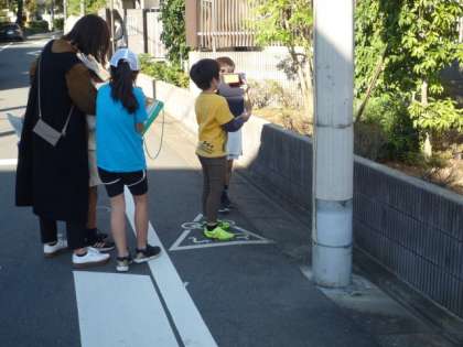 今日は、延期(えんき)した「地域(ちいき)安全マップのフィールドワーク」を行いました。
