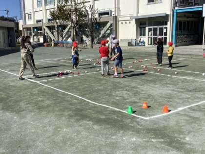 本番前にシミュレーションもして、話し合いを重ねたそうです。1年生が楽しめるようなルールの工夫がありました。とても丁寧な準備のおかげで、1年生は楽しく遊ぶことができました。