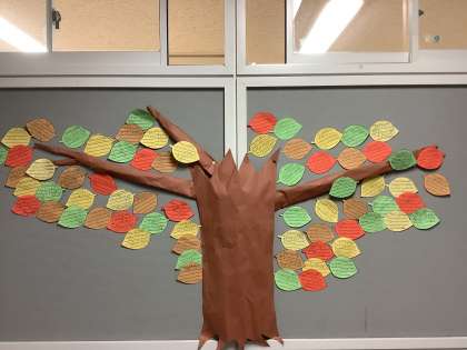 本をたくさん読んで、掲示板の木に葉をつけていきましょう。