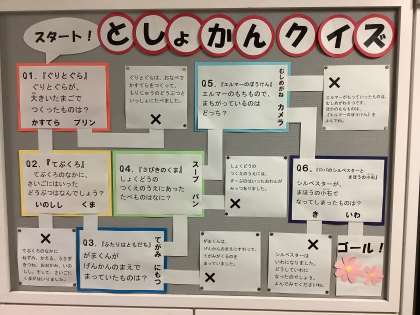 「読書の秋クイズ」を掲示しています。楽しんでくださいね♪