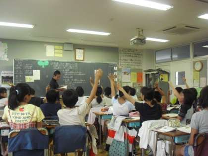 4時間目は6年生の社会科です。倒幕をすすめた歴史上の人物について学びました。途中のクイズでは大盛り上がりです。
