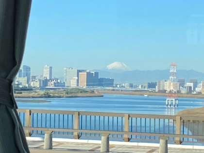 県境である多摩川を渡り、東京都から神奈川県へ入りました。多摩川の橋からは、きれいな富士山がよく見えて、子供たちは大喜びです。反対側には羽田空港も見えました。