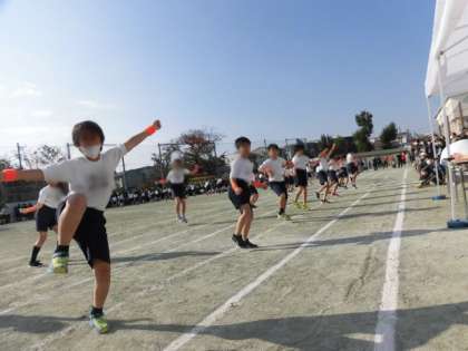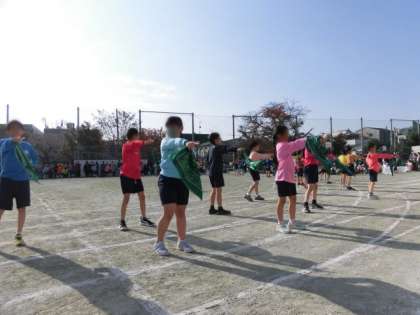 3年生はカラフルなバンダナを上下左右に大きく振って、笑顔いっぱいに楽しく踊りました。
