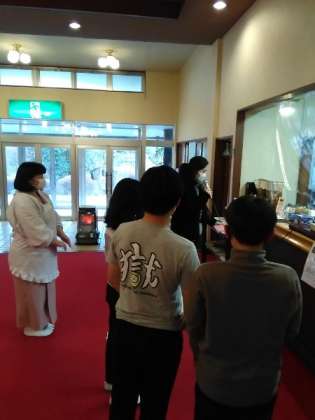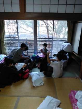 宿の女将さんの諸注意や教員からの安全で健康に過ごすことについての話等、子供たちの司会による開園式も終了です。