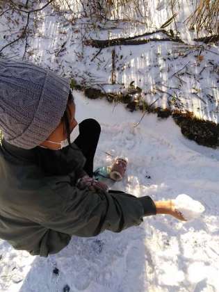 昨晩降ったパウダースノーに子供たちは釘付けです。