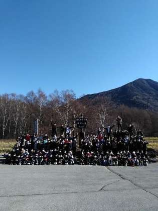 卒業アルバムに掲載する予定の学年全体写真を男体山を背景に撮影しました。