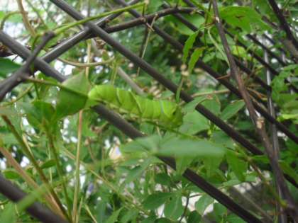 中休みに2年生のお友達が「アゲハの幼虫みつけたよ」と報告してくれました。早速、花壇のさんしょの木にいる幼虫を教えてくれました。最初はどこだか分らなかったです。一生懸命に指さす先に幼虫がいるのを見つけました。子どもたちの発見する目の素晴らしさに感動です。
