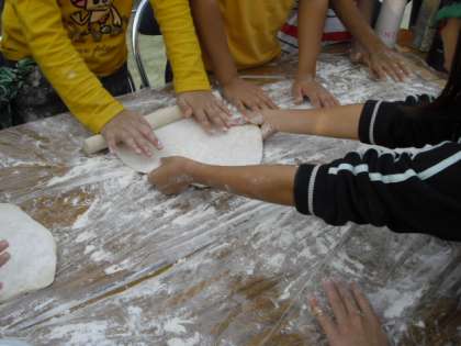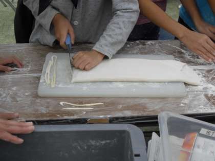 今日は、おやじの会主催の学校でキャンプです。受付を済ました後、うどんをこねてねかせます。うどんを寝かせている間に各班のスタンスです。クイズや劇、踊りで盛り上がりました。スタンスが終わると夕食の準備に取り掛かります。うどんをのばし細く切るのに苦労しました。こんな経験は初めての子どもたちが多かったですが、みんなけがもなく丁寧にうどんを作ります。