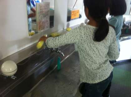 毎日中休みを利用して、流しの石鹸の点検をしています。ひがしの友達が手洗いをするときに石鹸がいつもあるのは、このような委員会の活動があるからです。委員会の友達に感謝して、大切に使いましょう。これから寒い季節がやってきます。手洗いうがいもしっかりとしましょう。