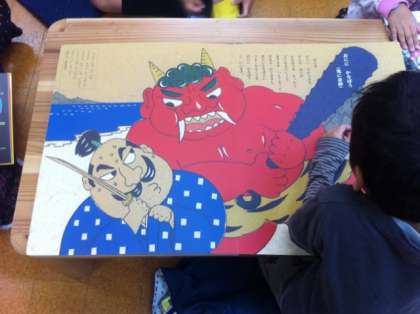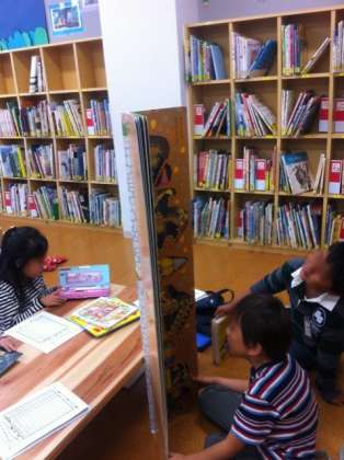 ひがしの絵本室には大型絵本があります。新しい大型絵本も入りました。1年生も大喜びで読んでいます。ひがしの絵本室で大型絵本を見てください。