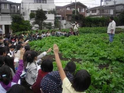 最後の質問タイムでは、たくさんの子どもが意欲的に手を挙げて質問したりメモを取ったりしました。「どんな野菜を育てるのが一番大変ですか?」という質問に対しては、「すべて大変だけれども、夏野菜のきゅうりやトマトが大変です。とくに気候に左右されやすいトマトは作るのが大変なんだよ。太陽の光があたらないと赤くならないんだよ。」と教えていただきました。それを聞いて「へえー。トマトって作るのが大変なんだ。」とうなずく姿が見られました。