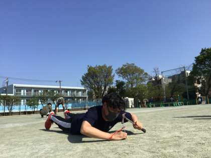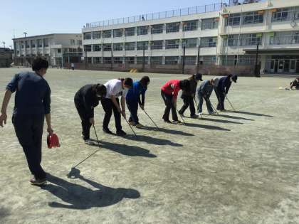 校庭に杭を打つ仕事。それは何のために行うと思いますか。