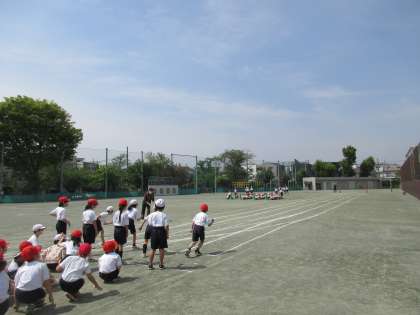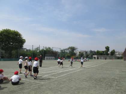 各学年の体育では、「かけっこ」「短距離走」の学習が始まりました。