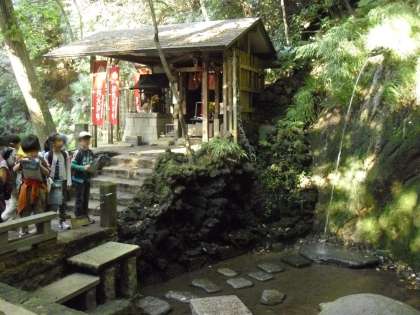 最後に等々力渓谷を歩きましたが、ほとんどの子どもが初めて訪れたそうです。「すごく涼しい。」「こんな場所があったんだ。」と、ここでも初めて見た感想を口ぐちに伝え合っていました。不動の滝を見て、1学期に学習した「等々力」の名前の由来を口にしている子どももいました。