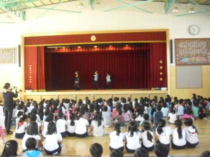 1年生から6年生までたくさんの子どもたちが体育館に応援に来てくれました。